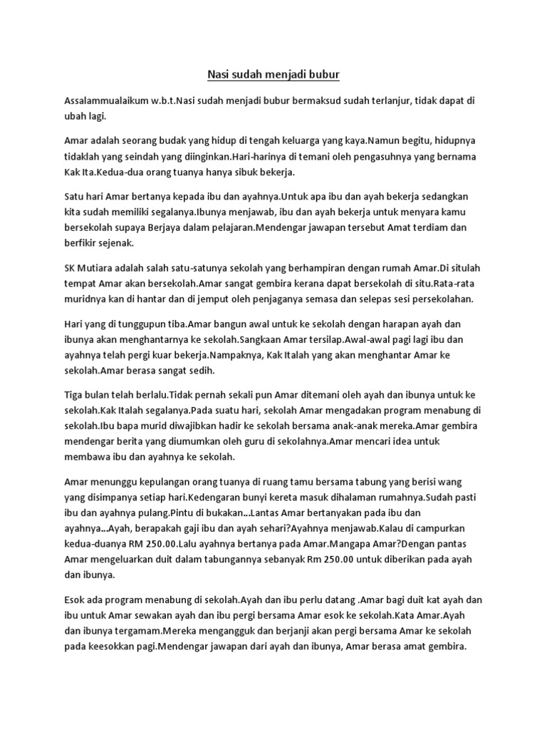 Karangan Peribahasa Nasi Sudah Menjadi Bubur